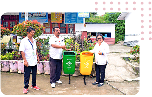 Placement of trash bins at SD Negeri 2 & SD Negeri 3 Parapat Village.